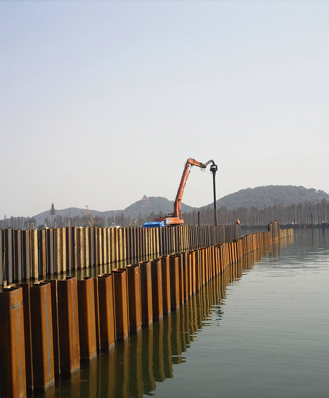 偉信歷經二十年的辛勤開拓和傾身實踐,鋼板樁工程部現擁有大批量各種類型共5萬多噸拉森鋼板樁、10多臺拉森鋼板樁樁機、拉森鋼板樁施工全套設備、海岸工程和鋼結構施工全套設備。我司隊伍在拉森鋼板樁工程施工中群策群力、歷經多年的磨煉、探索與研究,收獲了大多數客戶滿意。
